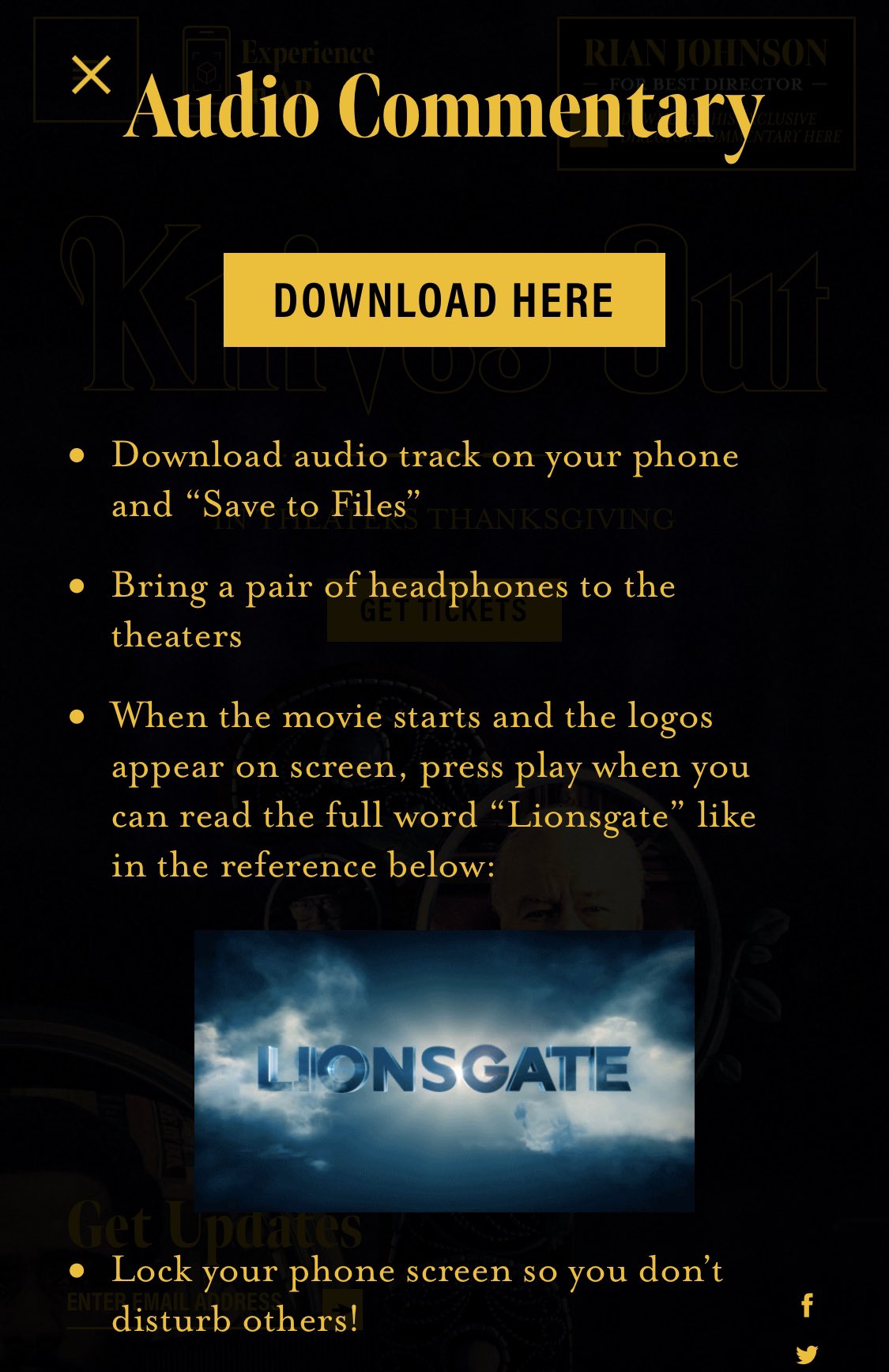 Discussingfilm On Twitter Lionsgate Has Released An Audio Commentary From Rianjohnson For Knives Out Which You Can Download To Your Phone And Take To Listen To Whilst Watching The Film Https T Co Jgzyyxhvp9 Https T Co 0usc8z7a20